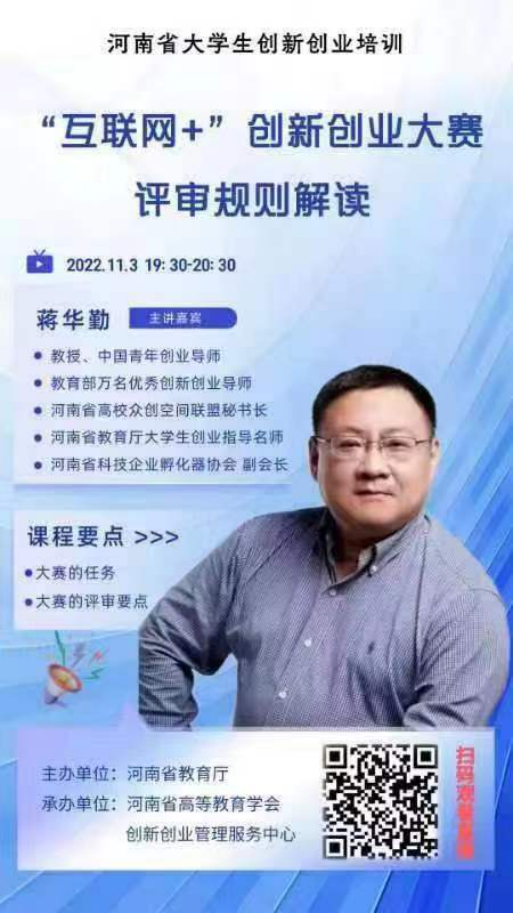 为了启发高校老员工的创业创新思维,了解创造的方法,培养科技创新精神和实践能力。11月3日晚,谈球吧组织师生共同观看了河南省教育厅老员工创新创业系列培训讲座第二讲,本次讲座由蒋华勤教授主讲。